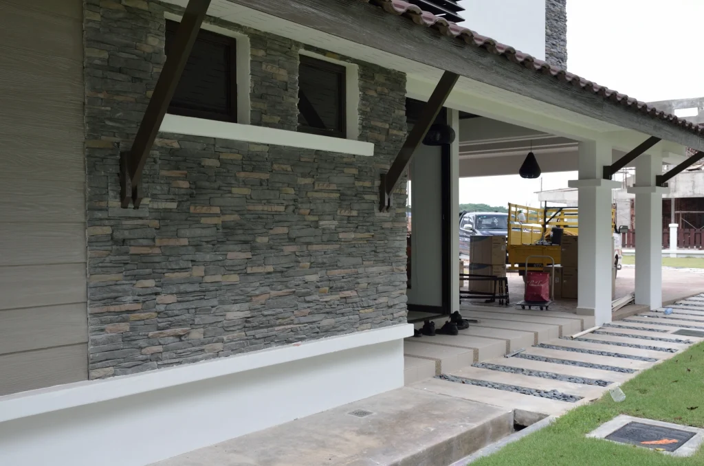 Saujana Stone’s Stacked Stone Veneer features rugged, horizontal coursing that evokes hand-laid masonry, adding shadow play and visual depth to façades, columns, and interior feature walls. With a coarse texture and natural variation, this stone veneer delivers an earthy, grounded aesthetic suited to both indoor and outdoor applications across Malaysia—an ideal choice for architects seeking disciplined lines with organic character.