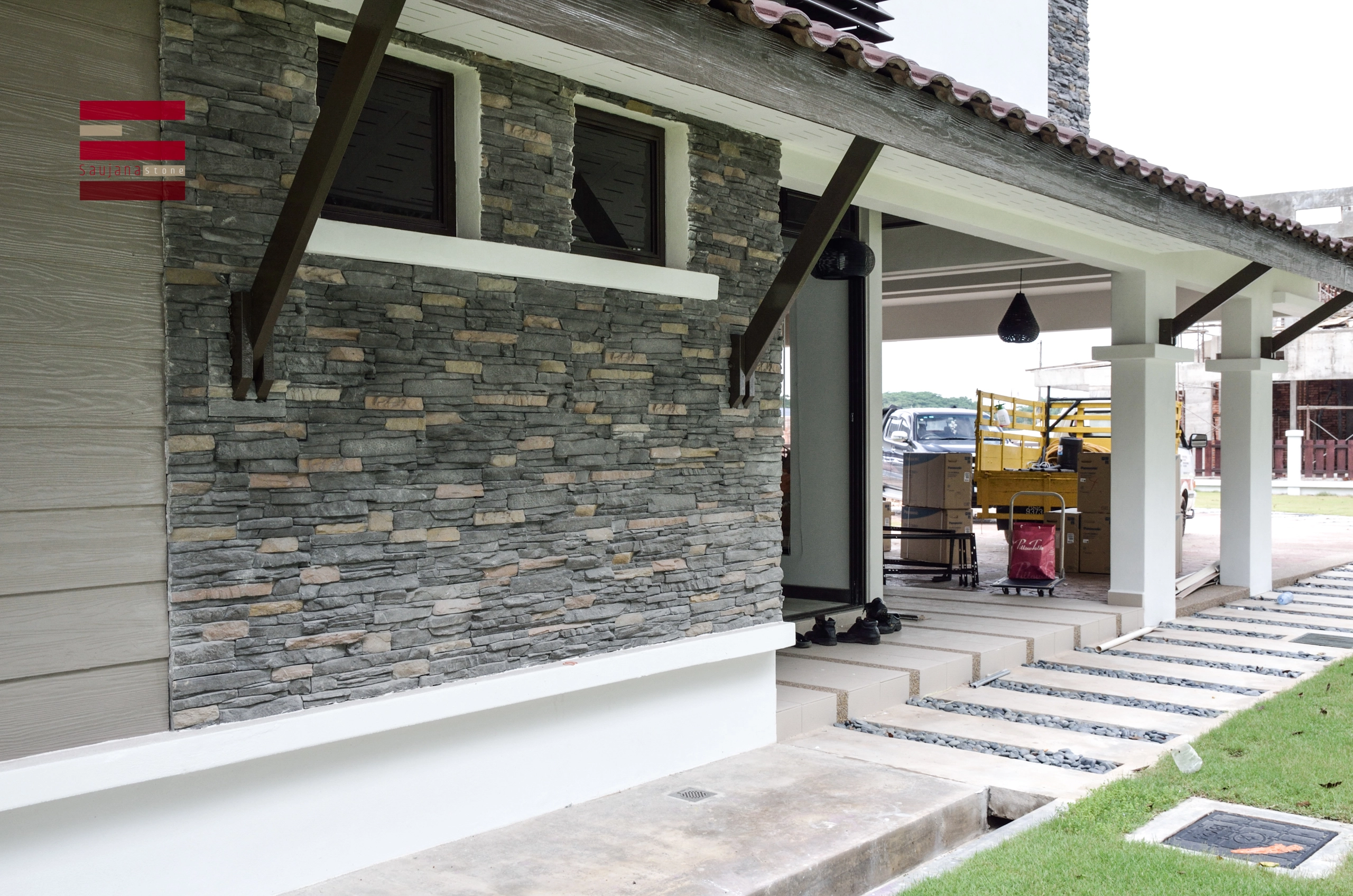 Saujana Stone’s Stacked Stone Veneer features rugged, horizontal coursing that evokes hand-laid masonry, adding shadow play and visual depth to façades, columns, and interior feature walls. With a coarse texture and natural variation, this stone veneer delivers an earthy, grounded aesthetic suited to both indoor and outdoor applications across Malaysia—an ideal choice for architects seeking disciplined lines with organic character.